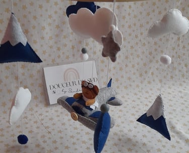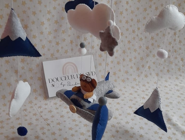 Création artisanale de mobiles en feutrine, doux et colorés.
